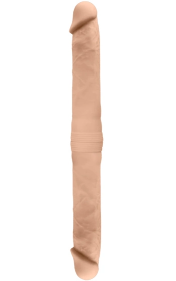 Flexibel och realistisk dubbeldildo gjord av flera lager silikon.