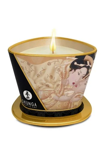 Kom i stämning med massagesljus från Shunga!Underbart massageljus som sprider härlig doft i rummet samtidigt som den bildar en lagom varm och skön massageolja. Tänd ljuset och låt det brinna en kort?: